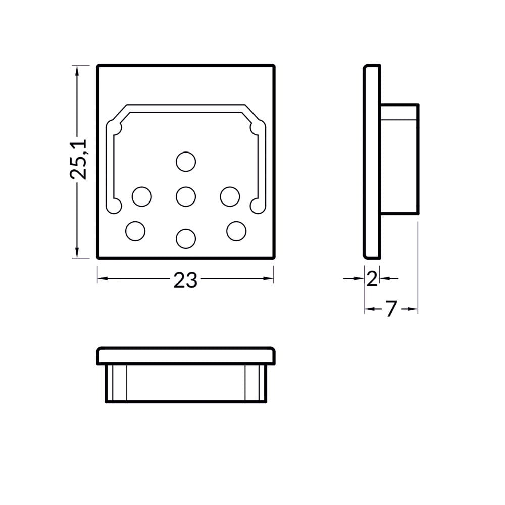Szerokość zaślepki zwiększa długość profilu.