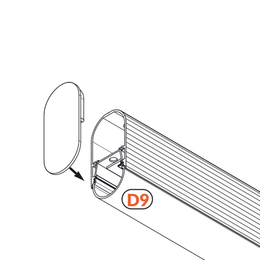 Zaślepki wykonane z surowej stali do zakończenia profilu aluminiowego LED NAMI23 malowane w kolorze białym. Zaślepka powoduje, że profil wygląda estetycznie jak i również chroni taśmę LED umieszczoną w środku. W celu efektownego domknięcia profilu, zaleca się użycia tej zaślepki przy równoczesnym montażu klosza "D9" zatrzaskowym.