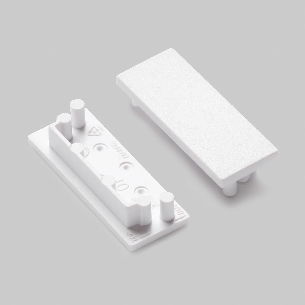 Zaślepki w białym kolorze wykonane z tworzywa ABS do zakończenia profilu aluminiowego LED VARIO30-01. Zaślepka powoduje, że profil wygląda estetycznie jak i również chroni taśmę LED umieszczoną w środku. Użyte tworzywo spełnia normę niepalności.