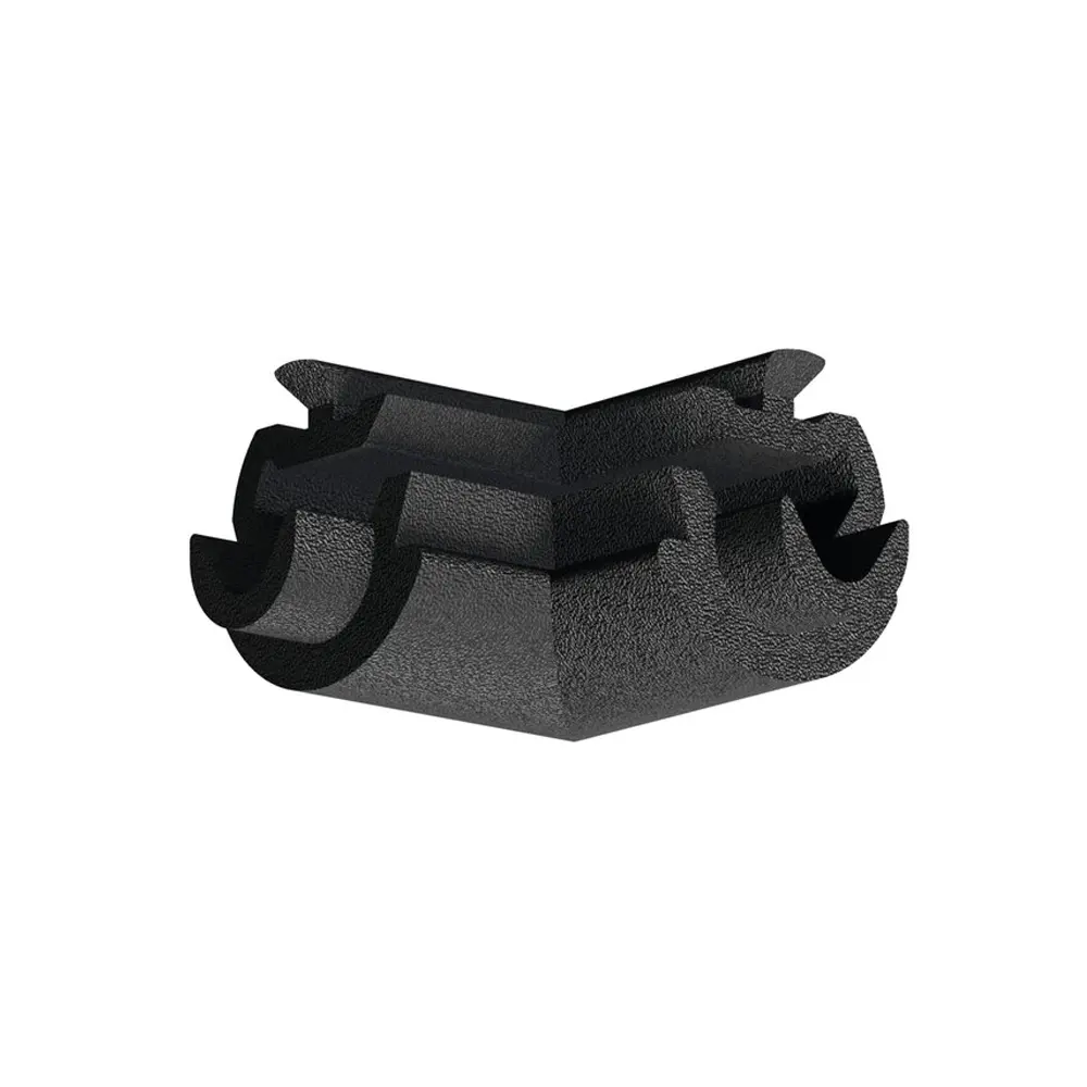 Zaślepka narożnikowa w czarnym kolorze, wykonana z tworzywa PA12 do zakończenia profilu aluminiowego LED PIKO-O. Przeznaczona jest do łączenia opraw pod kątem 90 stopni. Zaślepka powoduje, że profil wygląda estetycznie, jak i również chroni taśmę LED umieszczoną w środku.