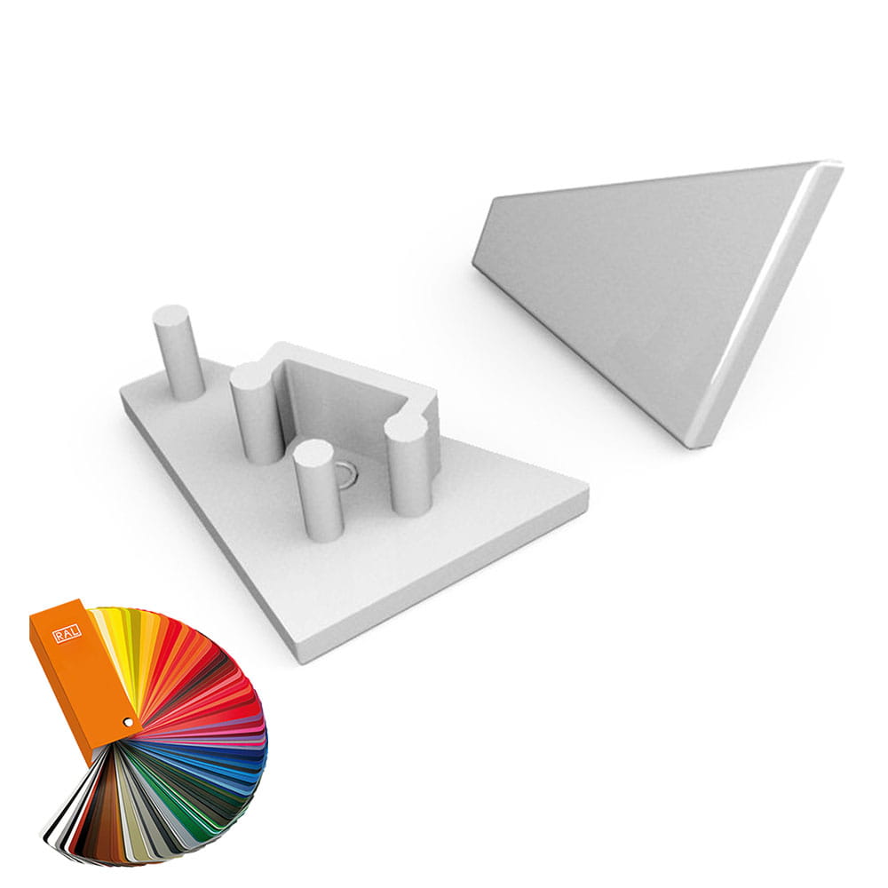 Zaślepki w dowolnie wybranym kolorze z palety barw RAL wykonane z tworzywa ABS do zakończenia profilu aluminiowego CORNER10. Zaślepka powoduje, że profil wygląda estetycznie jak i również chroni taśmę LED umieszczoną w środku. Użyte tworzywo spełnia normę niepalności.