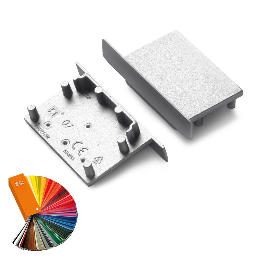 Zaślepki w dowolnie wybranym kolorze z palety barw RAL wykonane z tworzywa ABS do zakończenia profilu aluminiowego VARIO30-07. Zaślepka powoduje, że profil wygląda estetycznie jak i również chroni taśmę LED umieszczoną w środku. Użyte tworzywo spełnia normy niepalności.