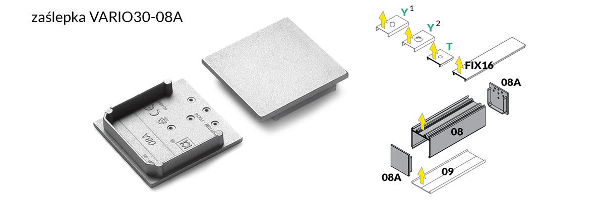 Każda z zaślepek dedykowanych dla systemu VARIO30 w swej budowie zawiera oznaczenia, które odpowiadają za kompatybilności zaślepki z wybranym profilem z układu VARIO30. Takie rozwiązanie pozwala na bezproblemowy i jednoznaczny dobór zaślepki do wybranego przez klienta wariantu.