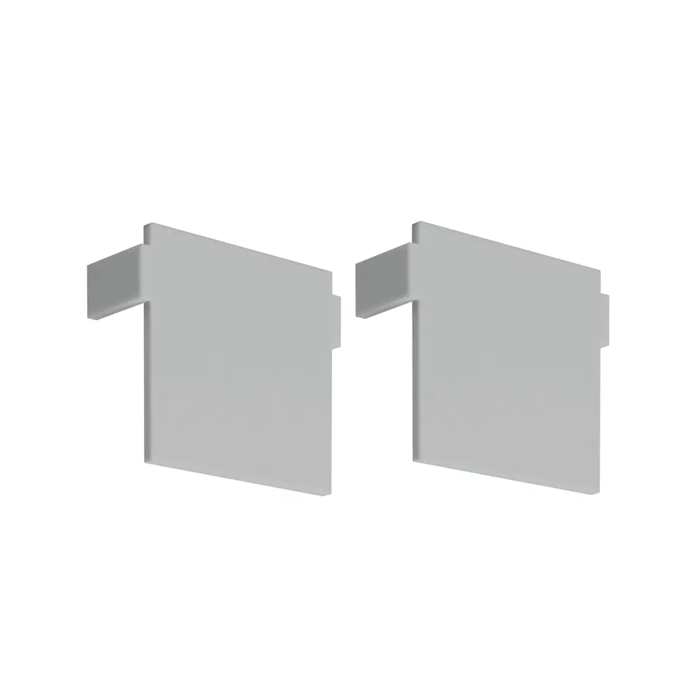 Zaślepki w szarym kolorze wykonane z tworzywa PP do zakończenia profilu aluminiowego LED TEKUS-ZM. Zaślepka powoduje, że profil wygląda estetycznie jak i również chroni taśmę LED umieszczoną w środku.