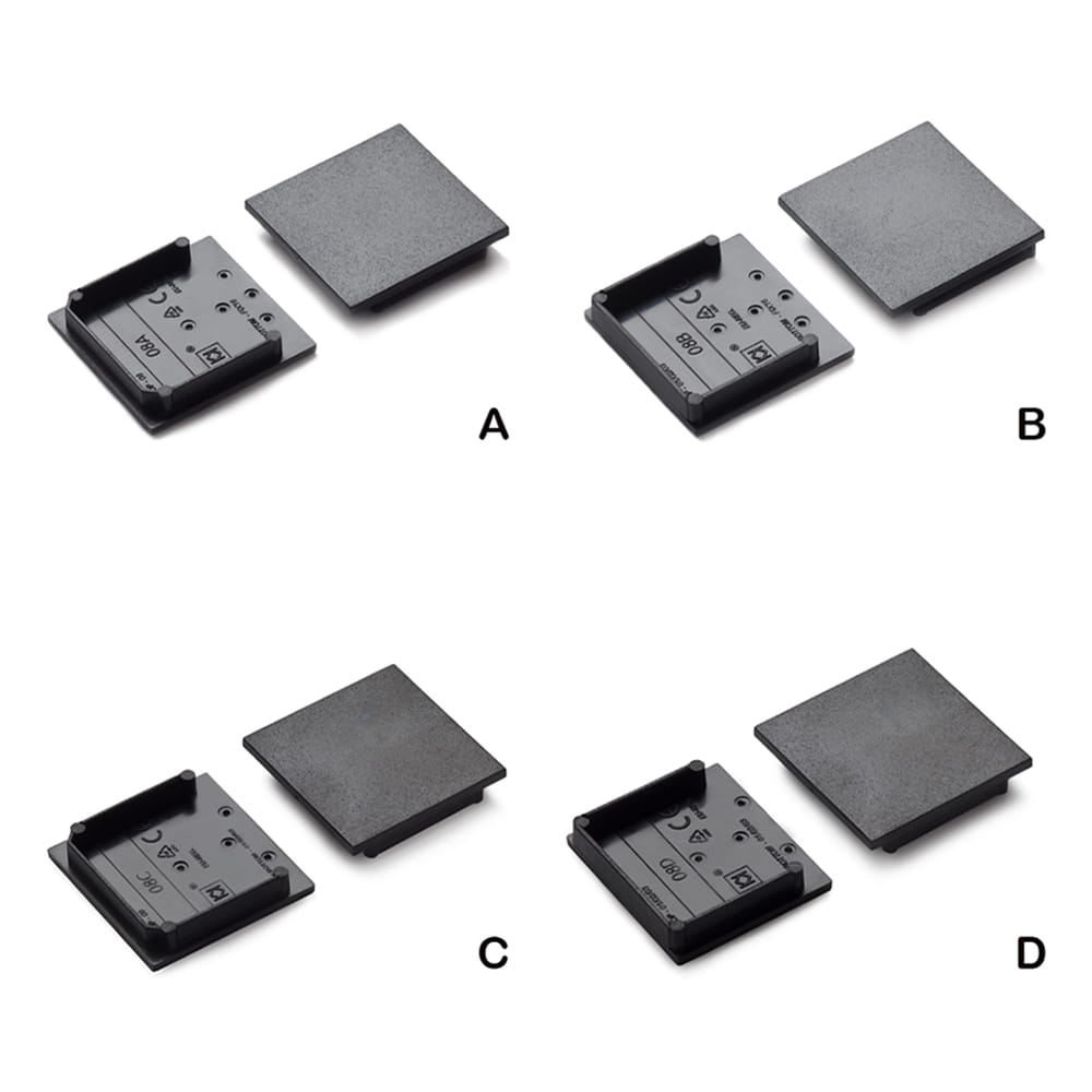 Zaślepki w czarnym kolorze wykonane z tworzywa ABS do zakończenia profilu aluminiowego LED VARIO30-08. Profil aluminiowy LED VARIO30-08, dzięki swej budowie przeznaczony jest jako obudowa do zasilacza, dlatego też najczęściej zostaje on połączony z innym profilem z gamy VARIO30. W związku z tak szeroką dziedziną stworzony został komplet zaślepek, składający się z czterech pojedynczych zestawów A-B-C-D, tak aby każdy klient z powodzeniem odnalazł odpowiednie rozwiązanie w połączeniu z innym profilem VARIO30. Zaślepka powoduje, że profil wygląda estetycznie jak i również chroni taśmę LED umieszczoną w środku.