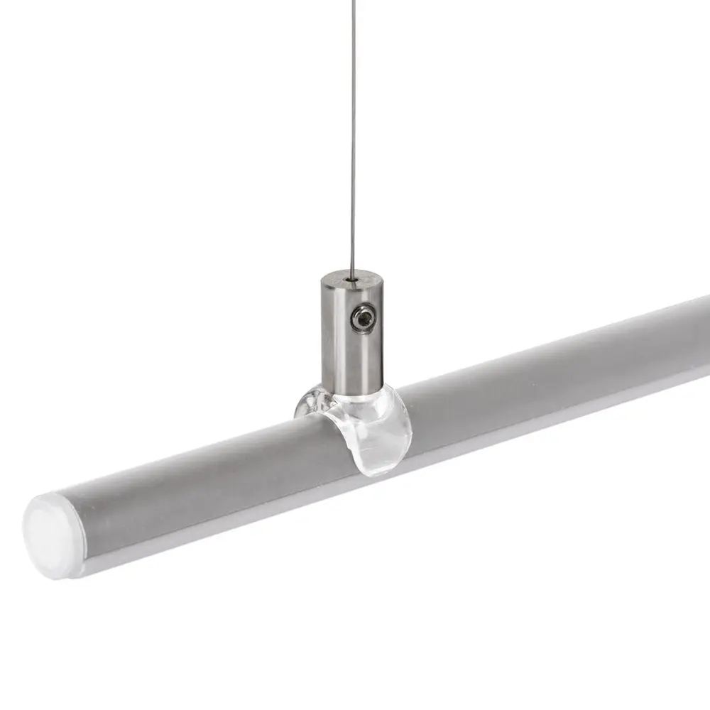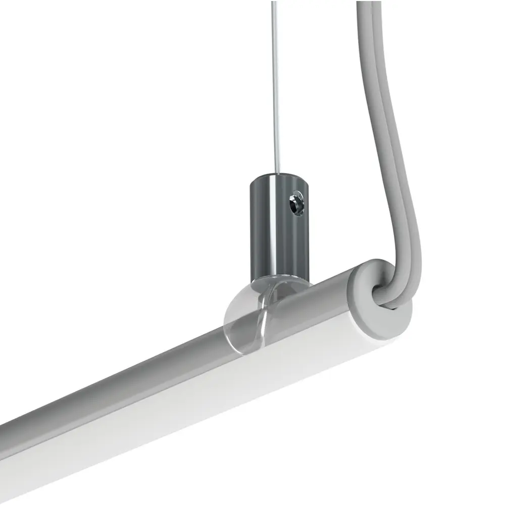 Zawieszka wzdłużna w srebrnym kolorze, wykonana ze stali nierdzewnej i tworzywa PC. Przeznaczona do montażu opraw oświetleniowych o małym gabarycie, takich jak PIKO-O, przy pomocy linek. Zawieszka posiada płynną regulację kąta świecenia oraz łatwy montaż i demontaż "na klik".
