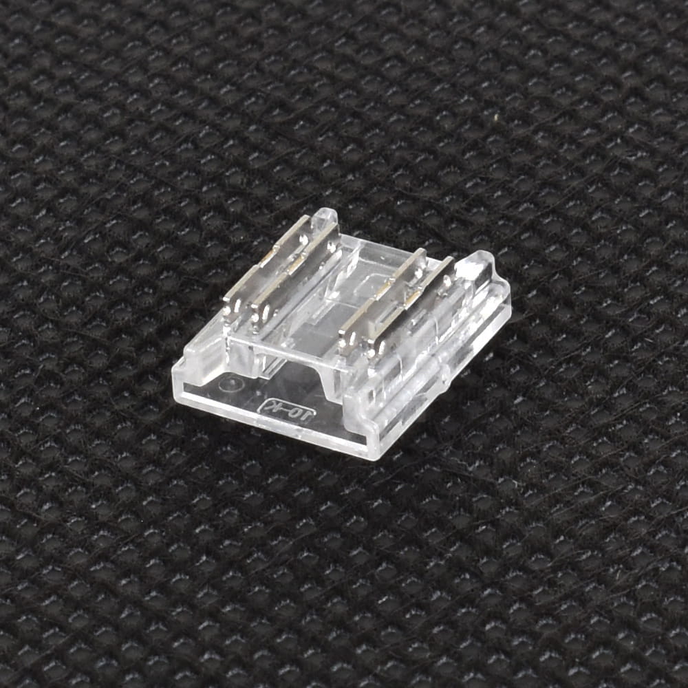 Złączka do taśmy LED CCT lub RGB umożliwia podłączenie dwóch taśm LED typu COB o szerokości podłoża 10mm. Dzięki zastosowaniu tego typu złączki możemy w prosty i wygodny sposób połączyć dwie taśmy LED ze sobą. Specjalne ostrza po "wkłuciu" zapobiegają łatwemu rozłączeniu się taśmy LED oraz zapewniają przewodzenie prądu elektrycznego.