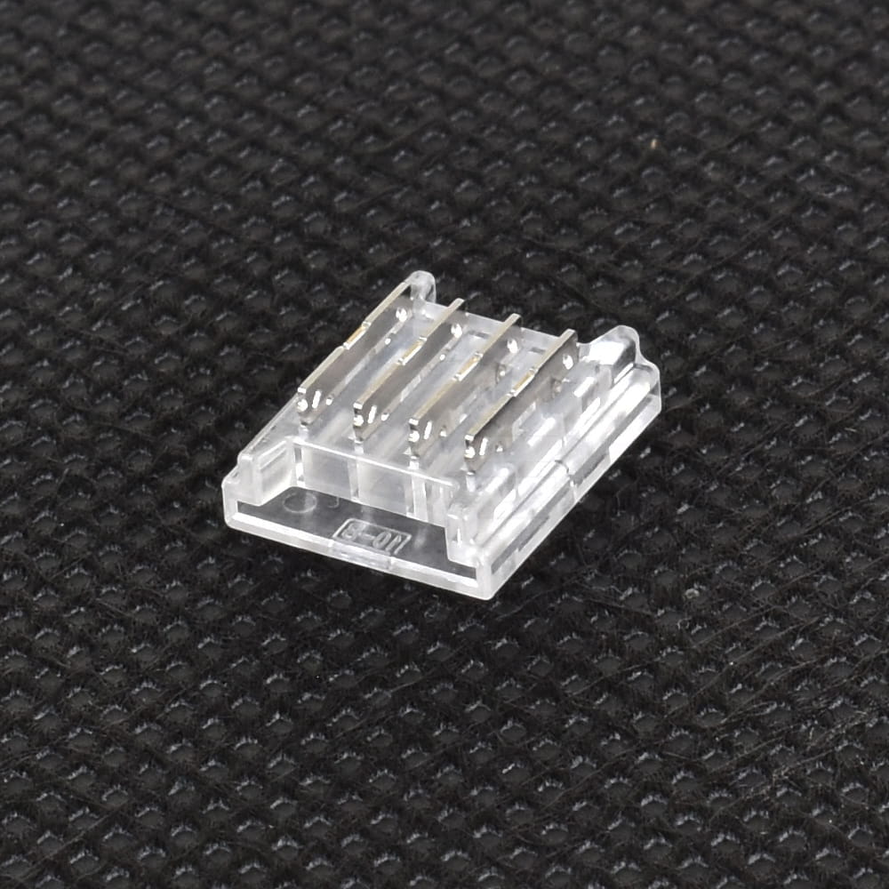 Złączka do taśmy LED RGB umożliwia podłączenie dwóch taśm LED wielokolorowych typu SMD o szerokości podłoża 10mm. Dzięki zastosowaniu tego typu złączki możemy w prosty i wygodny sposób połączyć dwie taśmy LED ze sobą. Specjalne ostrza po "wkłuciu" zapobiegają łatwemu rozłączeniu się taśmy LED oraz zapewniają przewodzenie prądu elektrycznego.