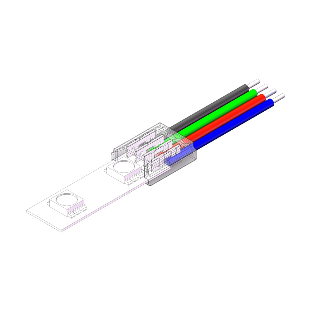 Złączka do taśmy LED RGB umożliwia podłączenie taśmy LED wielokolorowej typu SMD o szerokości podłoża 10mm do przewodów zasilających. Dzięki zastosowaniu tego typu złączki możemy w prosty i wygodny sposób podłączyć taśmę LED do dowolnego urządzenia. Specjalne ostrza po "wkłuciu" zapobiegają łatwemu rozłączeniu się taśmy LED oraz zapewniają przewodzenie prądu elektrycznego.