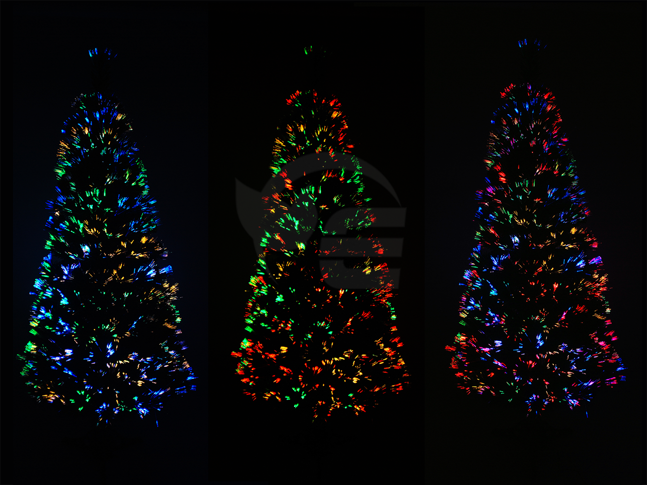 Choinka LED 210 cm oddaje niesamowity efekt mieniących się ciągle, zmieniających kolor punkcików. Końcówki gałązek (włókna światłowodowe) mienią się przewodzonym światłem: czerwonym, zielonym i niebieskim oraz ich pochodnymi mieszankami. Na każdej gałązce choinki znajduje się około 20 do 30 włókien światłowodowych.