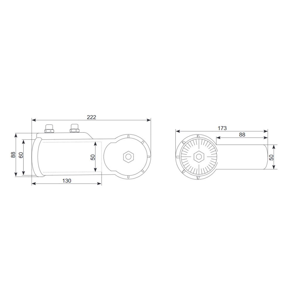 Uchwyt (adapter) rotacyjny przeznaczony jest do montażu opraw ulicznych LED na słupach oraz wysięgnikach. Umożliwia on regulację kąta nachylenia lampy ulicznej LED względem płaszczyzny drogi w zakresie -10° do 185°.
